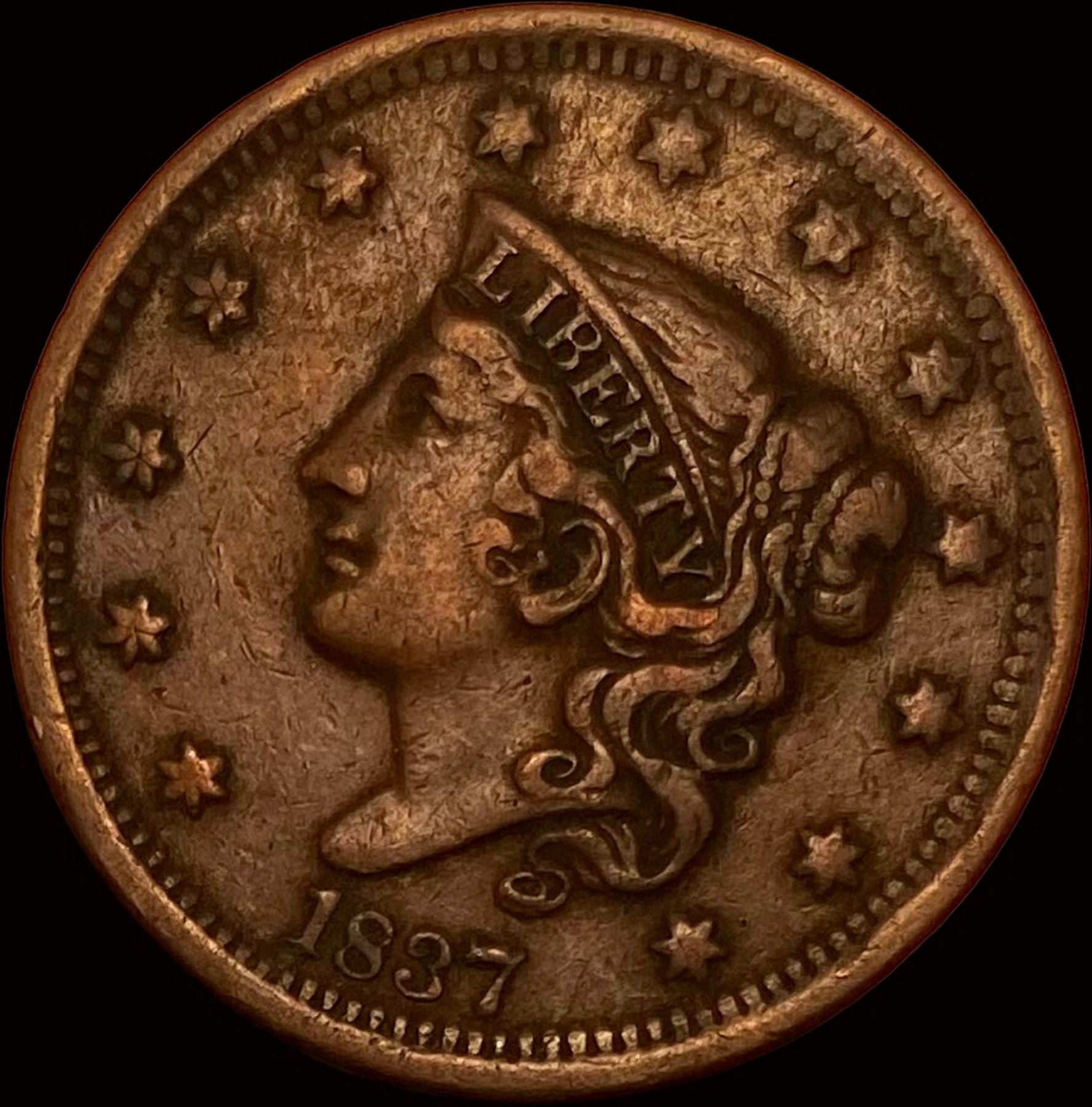 1837 Coronet Head Large Cent NEARLY UNCIRCULATED