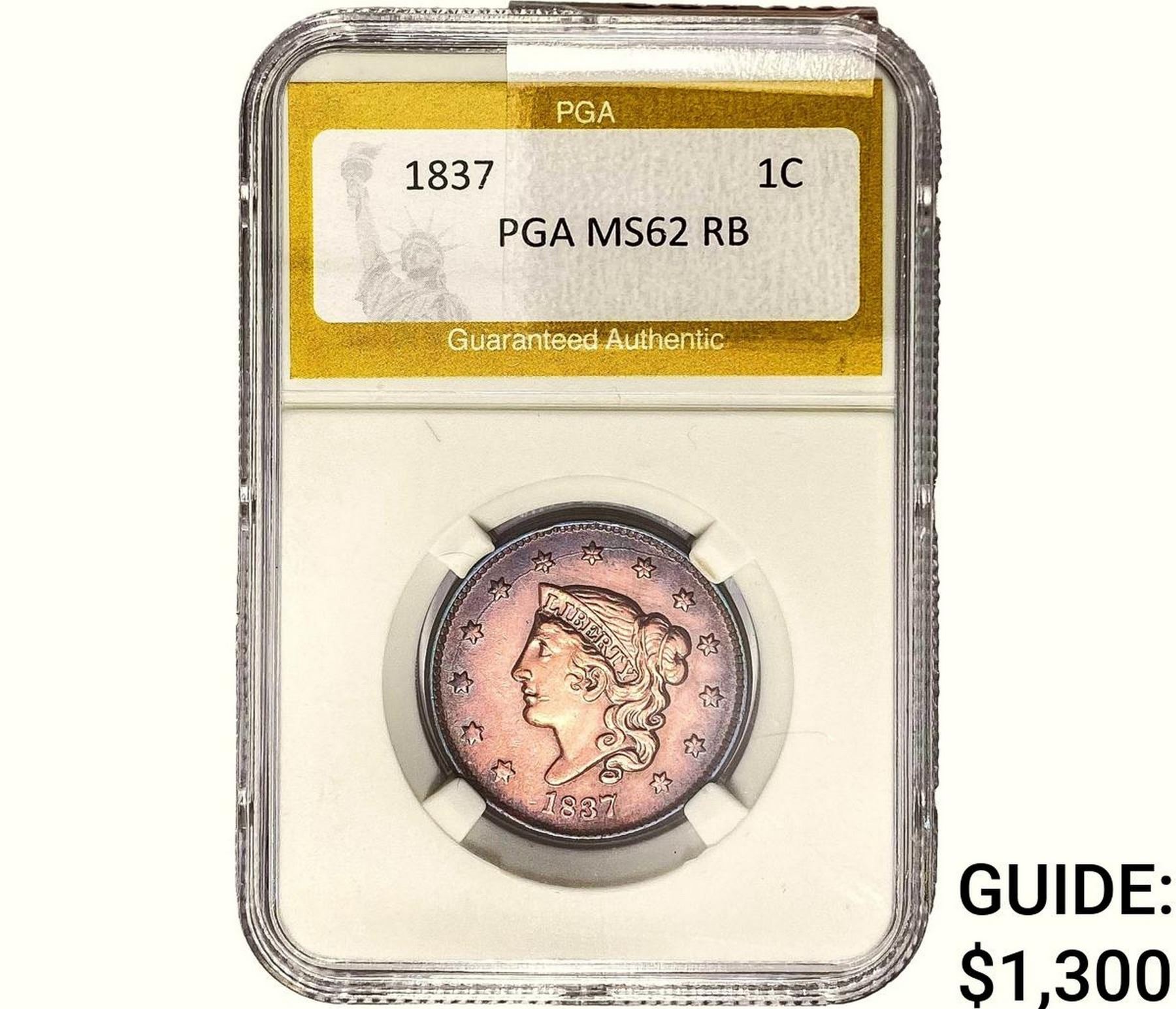 1837 Coronet Head Large Cent PGA MS62 RB