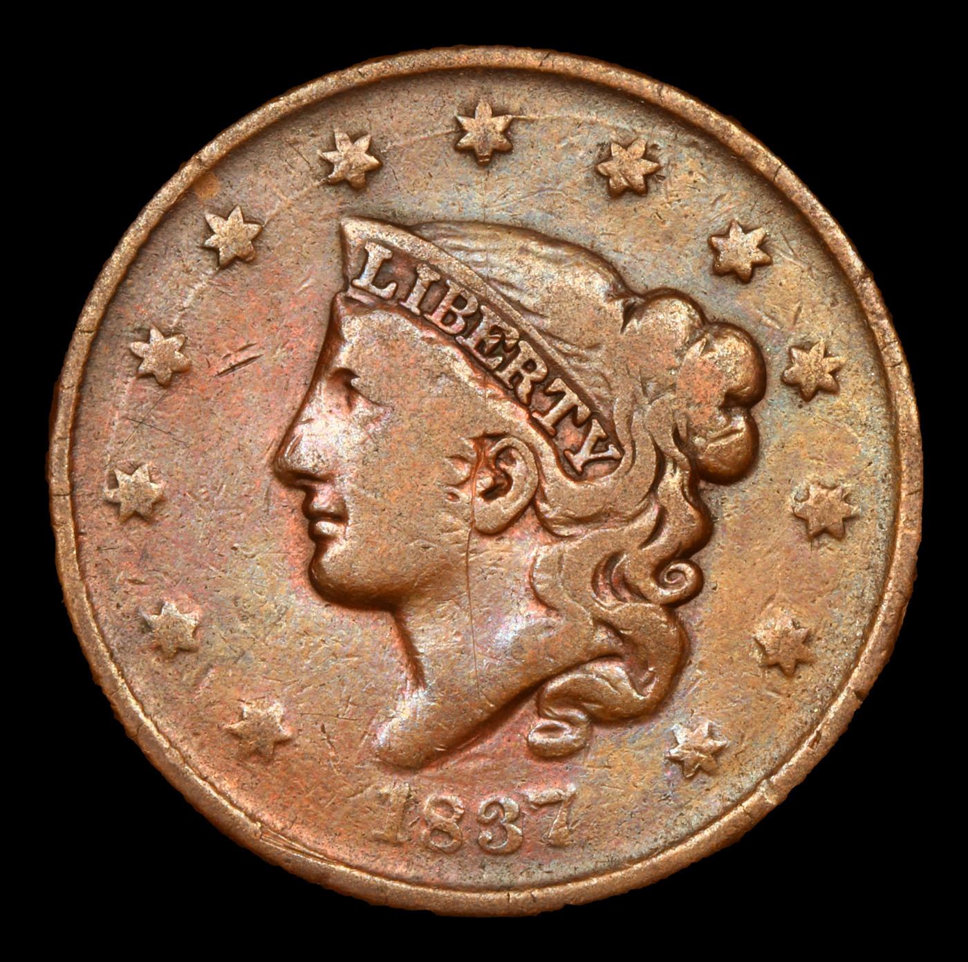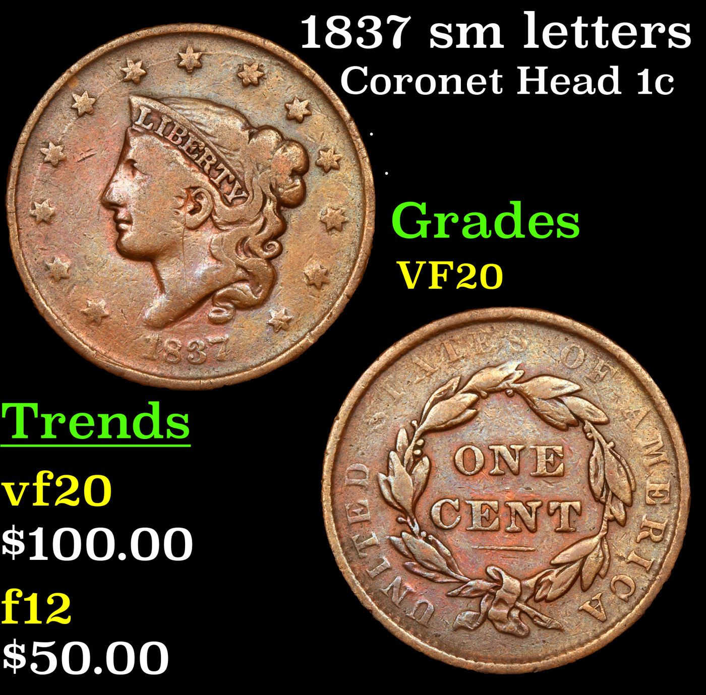 1837 sm letters Coronet Head Large Cent 1c Grades vf, very fine.