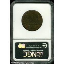1837 E.F. Sise & Co. Hard Times Token MS62 NGC. Low <B>1837 E.F. Sise & Co. Hard Times Token MS62 NGC.</B></I> Low-132, HT-195. E.F. Sise & Co. of Portsmouth, N.H. proclaim their merits as "IMPORTERS/OF/CROCKERY/AND/GLASS WARE/DEALERS/IN/COAL". A small contact mark and a faint spot are above the R in WARE, otherwise a lustrous piece with alternating chocolate-brown and mahogany colors. <BR><BR><B>Important notice:</B> Heritage usually auctions material at the rate of 200-250 lots per hour. On some occasions eBay Live bid software or the Internet may not be able to keep up with the pace of the auction. We recommend placing a realistic absentee bid now as insurance to avoid disappointment. Occasionally the auctioneer may eliminate or reject an eBay Live bid, and the auctioneer may also reopen a lot after the close of the eBay live bidding (usually because we missed an audience bid), and may reject your bid even if it shows you as the winning bidder. By bidding via eBay Live, you agree that Heritage may award the lot to another bidder at its sole discretion under the circumstances described above or any other reasonable circumstances. Since eBay bids are not shown to us until we open the lot on the floor, we treat those bids just like floor bids. In most cases the floor responds before the eBay bid is presented to us, due to Internet lag time, so for consistency we have made it a policy that floor bids are always considered first over tie eBay live bids. Also please note that all Heritage lots purchased through eBay Live carry a 20% Buyer's Premium. Please make sure you read the Terms and Conditions before you bid. This lot is being auctioned in conjunction with a live floor auction by Heritage Galleries & Auctioneers. All final auction and invoice information will be supplied by Heritage Galleries & Auctioneers, and all other information should be considered preliminary. Lot:8036