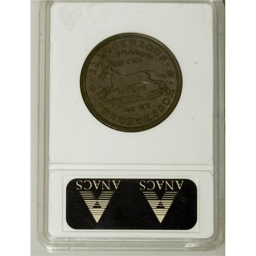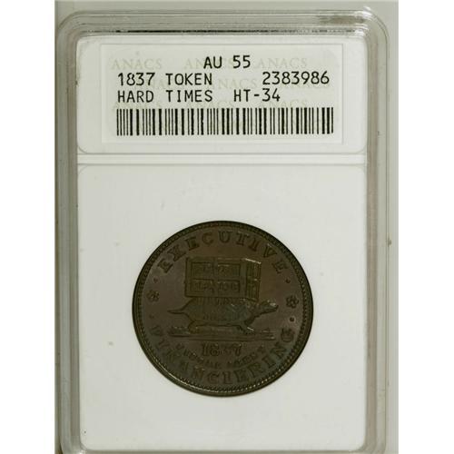 <B>1837 Executive Financiering AU55 ANACS.</B></I> Low-20, HT-34, DeWitt-CE-1838-4. Impressive quality for the grade. A chocolate-brown representative with only a whisper of wear on the tortoise and donkey.<BR><BR><b>Shipping:</b> Coin/Currency (<a target="_blank" href="http://www.heritageauctions.com/common/shipping.php">view shipping information</a>)