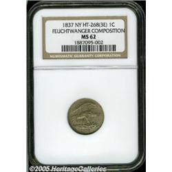 <B>1837 Feuchtwanger Cent MS62 NGC.</B></I> Low-120, HT-268, Die Variant 3-E, R.3. A dusky tan-brown piece, the surfaces are unabraded although a pair of small planchet flaws (as made) are on the upper right obverse field.<BR><I>Ex: F.C.C. Boyd; John J. Ford, Jr. Collection, Part IV (Stack's, 6/04), lot 225.</B></I>