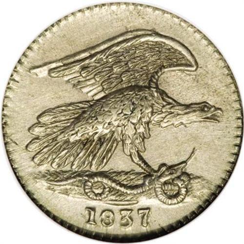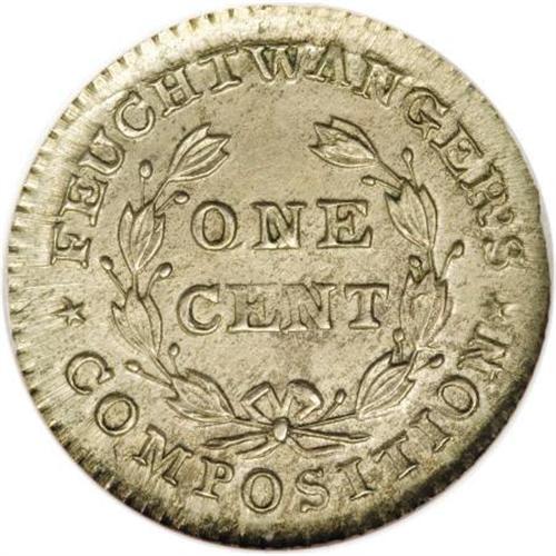 <B>1837 Feuchtwanger Cent MS62, NY HT-268, NGC.</B></I> Low-120, Breen 5-G, R.2. A smooth and gently shimmering almond-gray representative of this famous private cent token. Dr. Lewis Feuchtwanger's coinage was influential since his cent diameter is nearly identical to that of the 1856 Flying Eagle cent, although his German silver alloy was never adopted for Federal production. Listed on page 375 of the 2008 <I>Guide Book</B></I>.<BR><I>From The Madison Collection.</B></I><BR><BR><b>Shipping:</b> Coins & Currency (<a target="_blank" href="http://www.heritageauctions.com/common/shipping.php">view shipping information</a>)