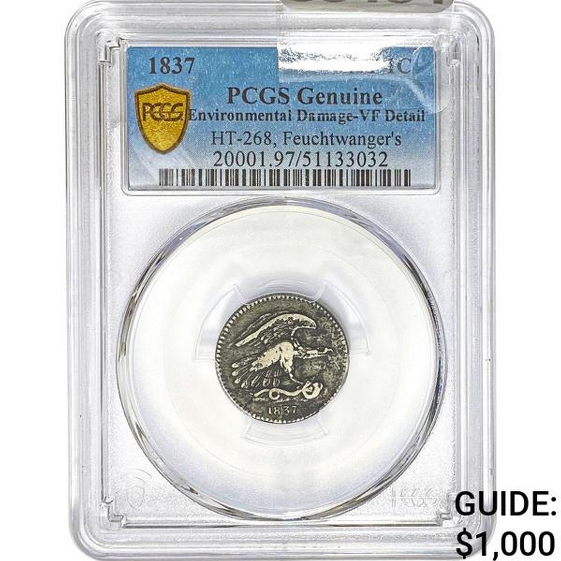 1837 Feuchtwanger Cent PCGS Genuine VF D