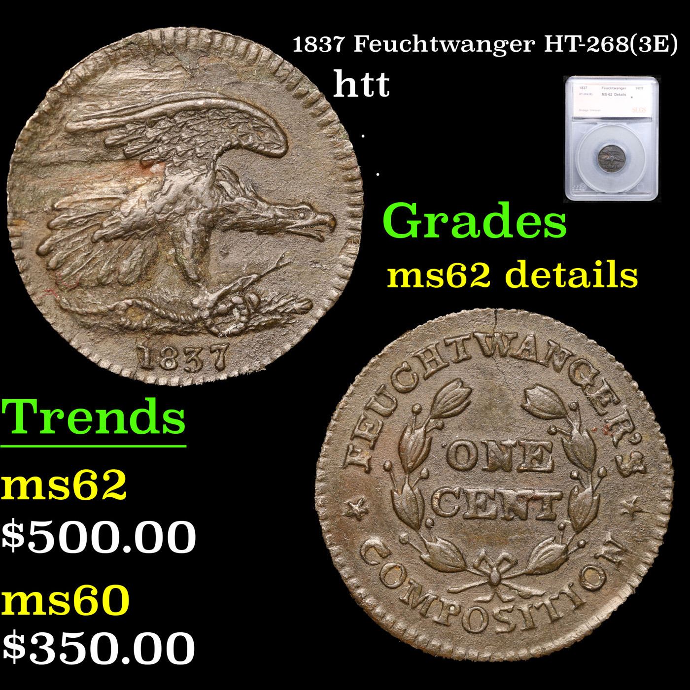 1837 Feuchtwanger HT-268(3E) Hard Times Token 1c Grades ms62 details By SEGS.