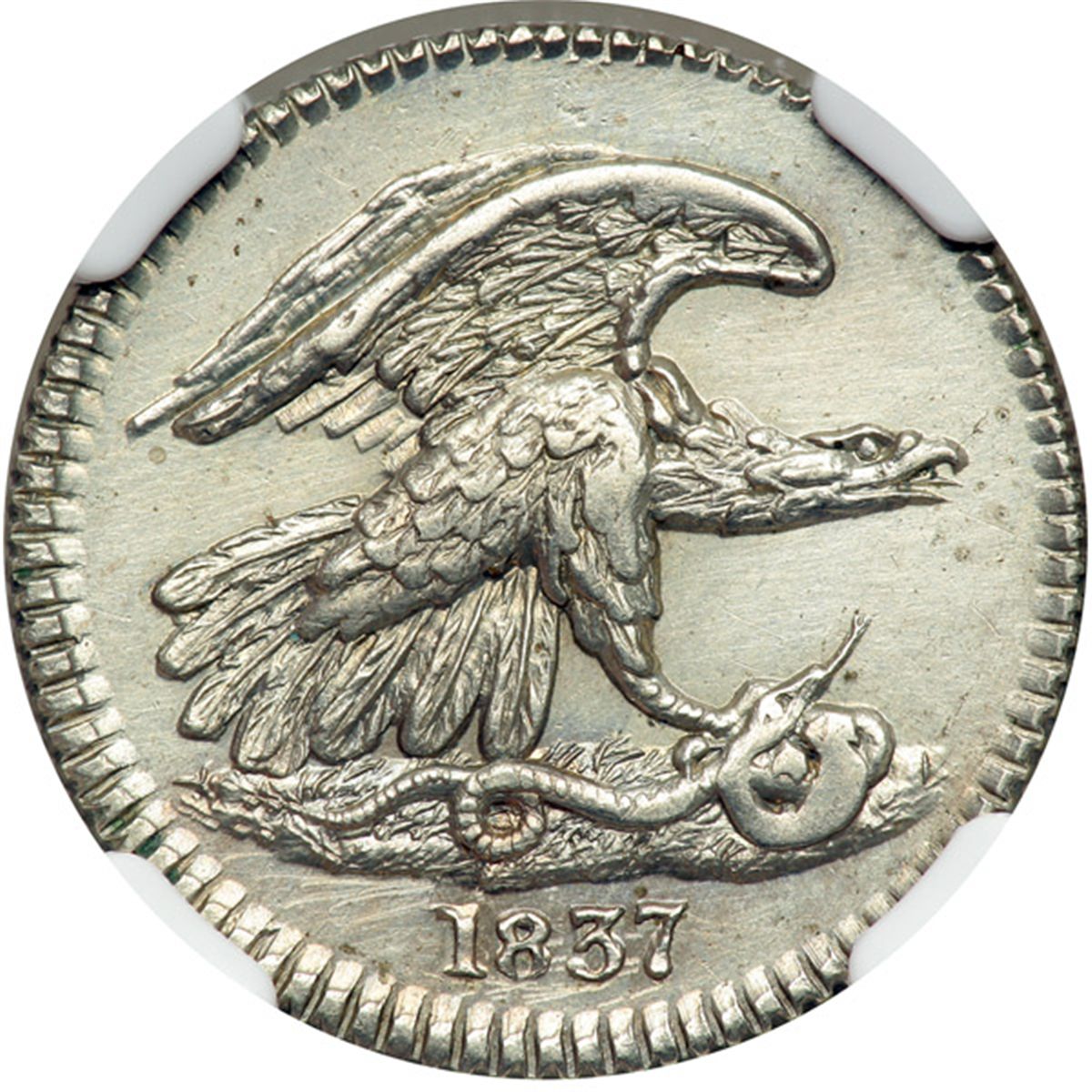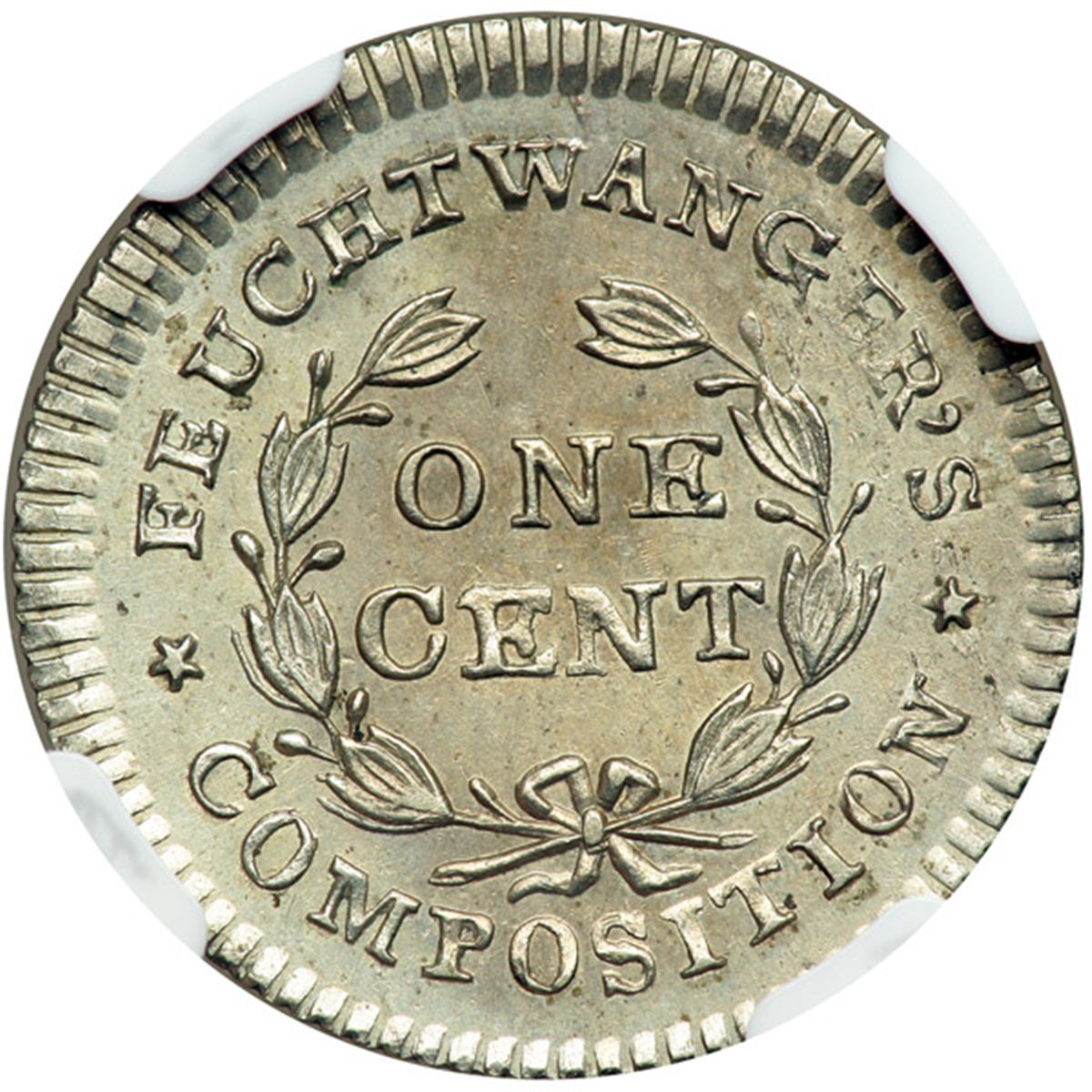 1837 Feuchtwanger New York Cent. HT-268 (6I). NGC Unc Details, improperly cleaned. Well struck and quite pleasing. An impressive early proposal to substitute this silvery looking allow for copper in the One Cent piece.