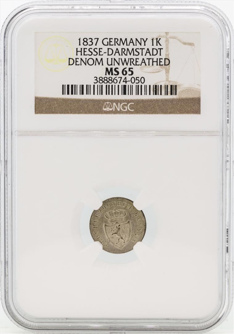 One 1837 Germany Kreuzer NGC MS65. NGC Certified.