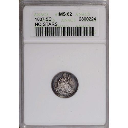 1837 H10C Large Date (Curl Top 1) MS62 ANACS. Tall Pea 1837[H10C] Large Date (Curl Top 1) MS62 ANACS