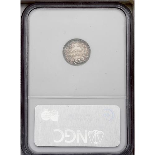 <B>1837<H10C> Large Date (Curl Top 1) MS63 NGC.</B></I> Silver surfaces are partially covered in warm lavender and electric-blue patina, and display sharply struck design elements. Some light handling marks are noted on the reverse.