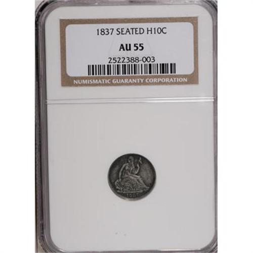 1837 H10C No Stars, Large Date (Curl Top 1) AU55 NGC