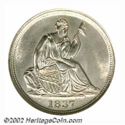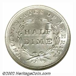 1837 H10C No Stars MS66 NGC. Small Date. V-4. The finer of two 1837 V-4 Seated Half Dimes in this sale, this shimmering representative is untoned throughout. Every feature is powerfully impressed, and the surfaces are silky-smooth from rim to rim. A strong candidate for inclusion in a high quality type or date set. There is some interesting metal flow on the reverse, and a sizeable die break is seen on the same side at the first A in AMERICA. Both of these features are Mint-made. Important notice: We expect to be auctioning lots at the rate of 200-250 per hour. Sometimes eBay Premier live bid software cannot keep up with that pace, so we strongly recommend that you place a realistic proxy bid now as insurance to avoid disappointment. Also please note that all Heritage/CAA lots purchased through eBay Premier carry a 20% Buyer's Premium. Please make sure you read the Terms and Conditions.