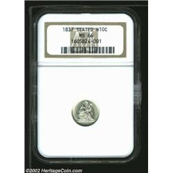 1837 H10C No Stars MS66 NGC. Small Date. V-4. The finer of two 1837 V-4 Seated Half Dimes in this sa