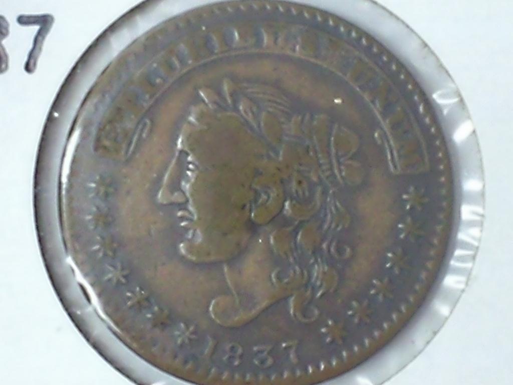 1837 HARD TIMES TOKEN HT-44 NOT ONE CENT
