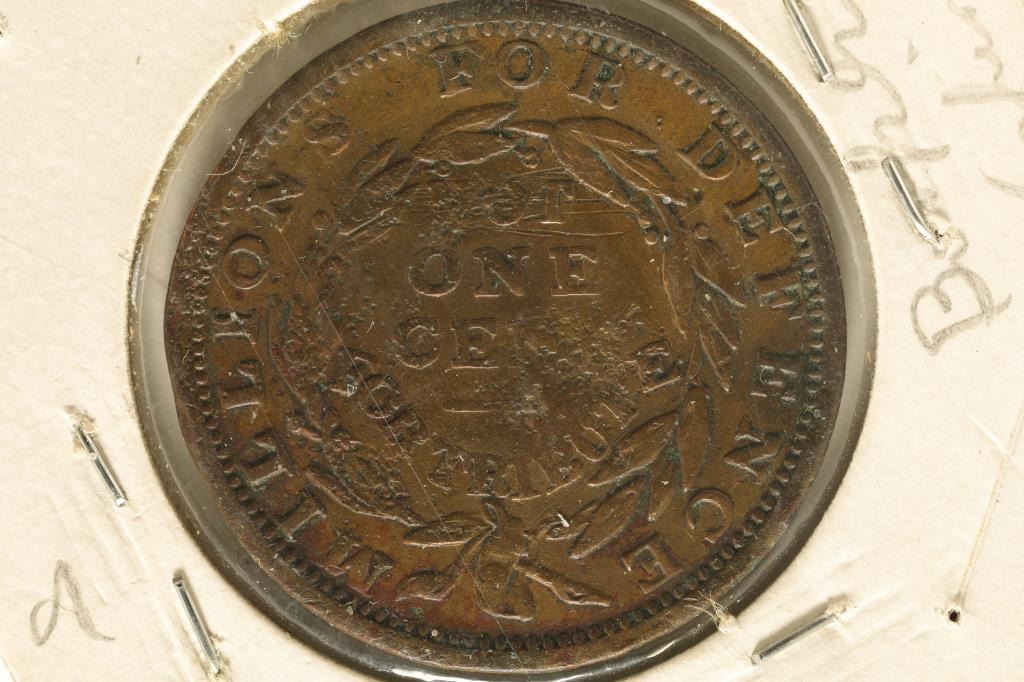MILLIONS FOR DEFENSE, NOT ONE CENT FOR TRIBUTE ON THE REVERSE. ENVIRONMENTAL DAMAGE AND SCRATCHES ON THE OBVERSE AND REVERSE