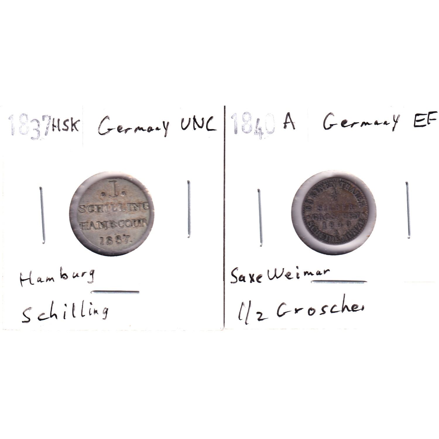 1837 HSK Germany; Hamburg; Shilling UNC & Saxe Weimer 1840A 1/2 Groscher EF. 2pcs