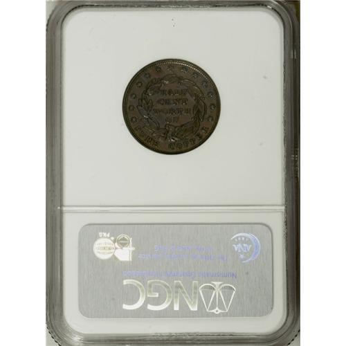 1837 Half Cent Token AU58 NGC. Low-49, HT-73. This piec