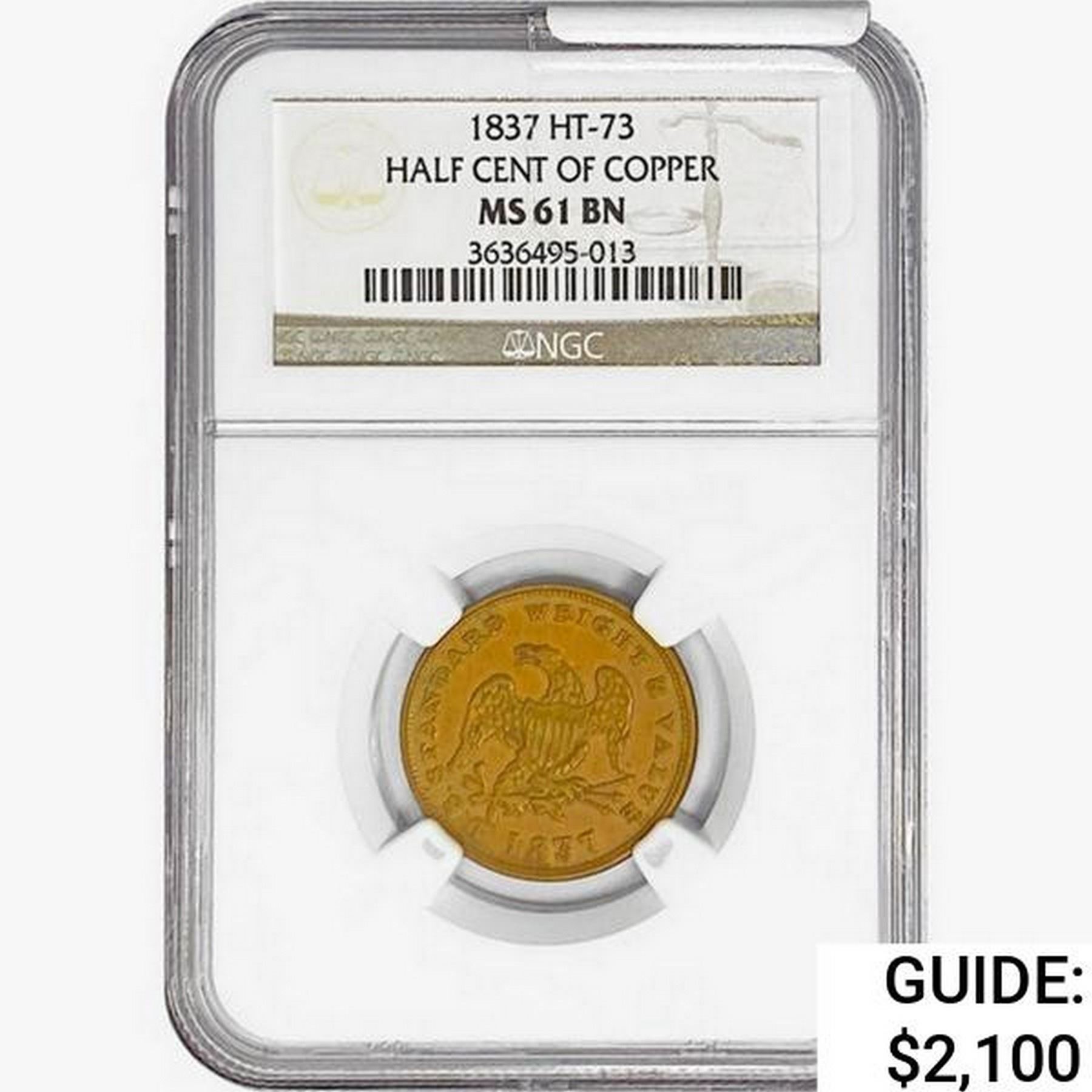 1837 Half Cent of Copper NGC MS61 BN HT-73