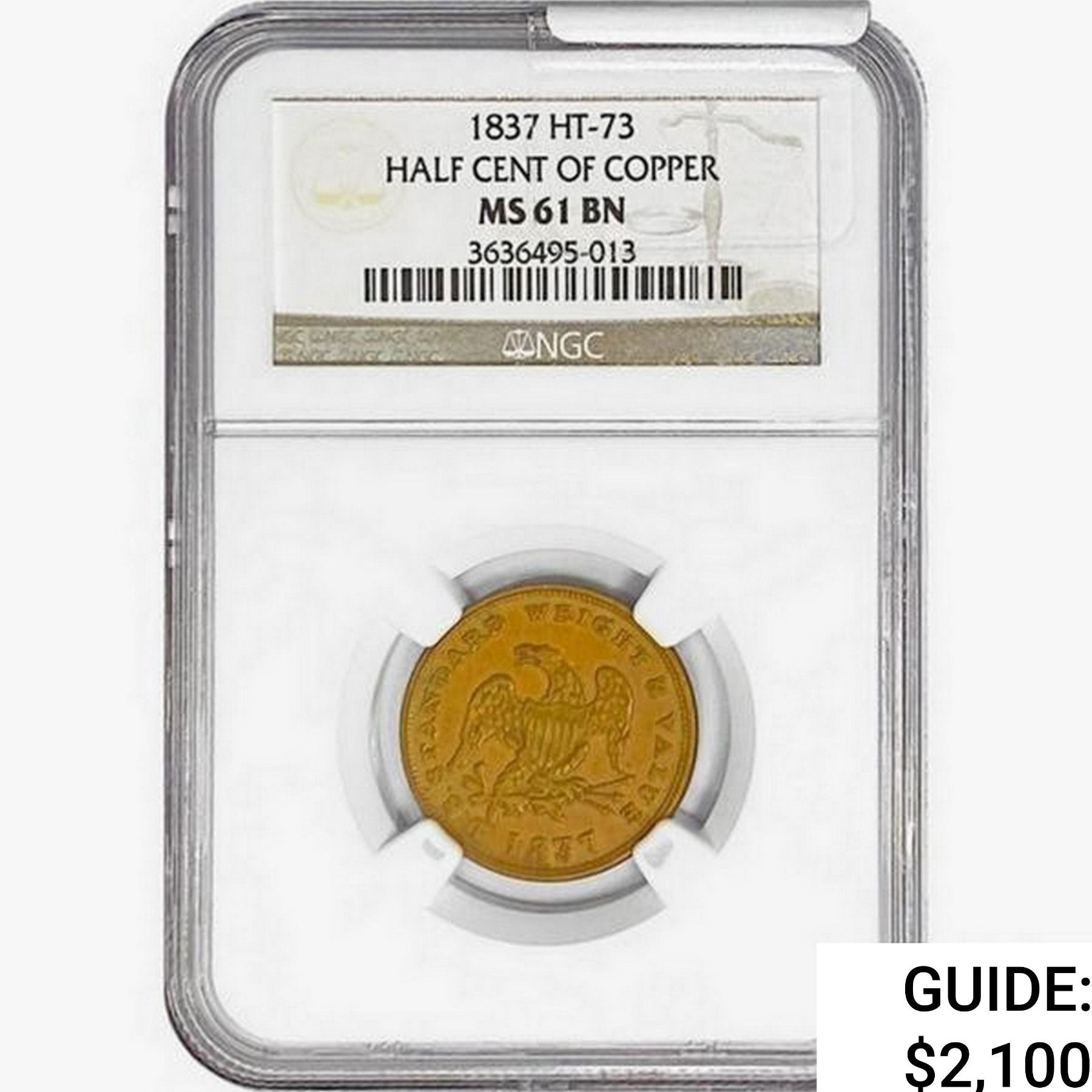 1837 Half Cent of Copper NGC MS61 BN HT-73