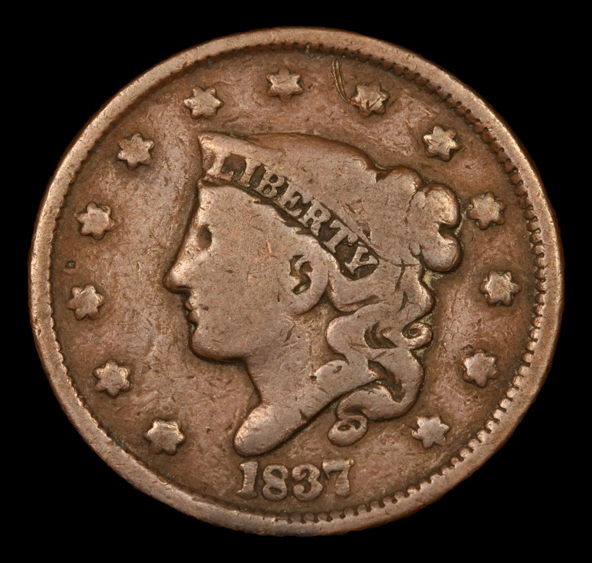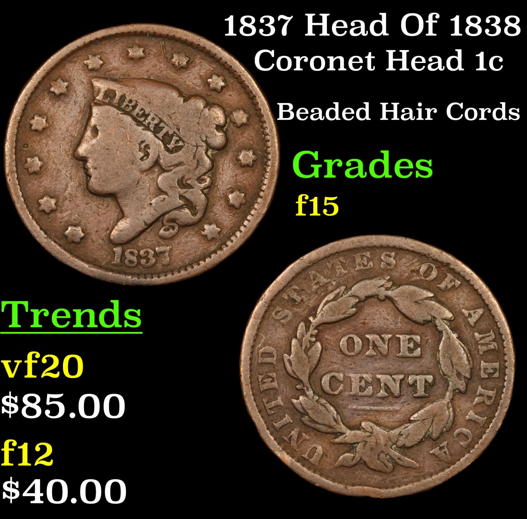 1837 Head Of 1838 Coronet Head Large Cent 1c Grades f+.