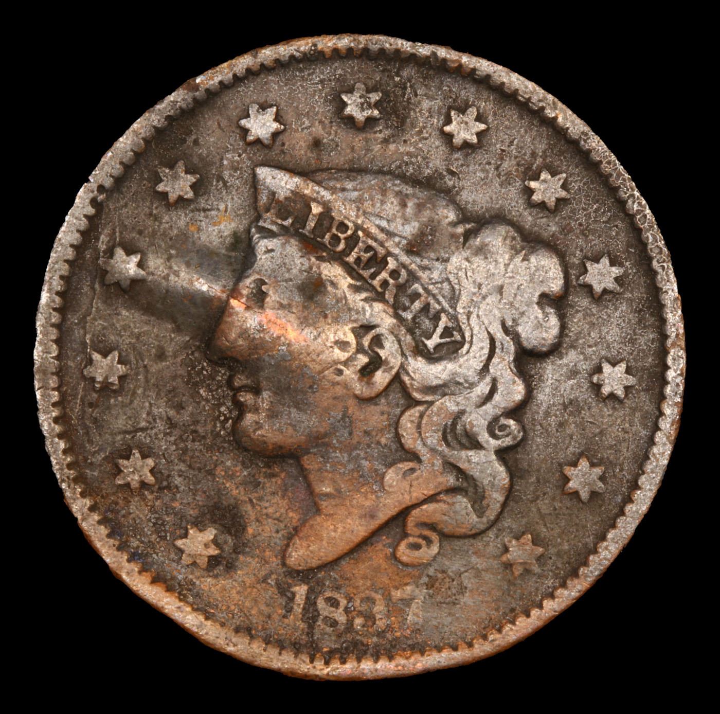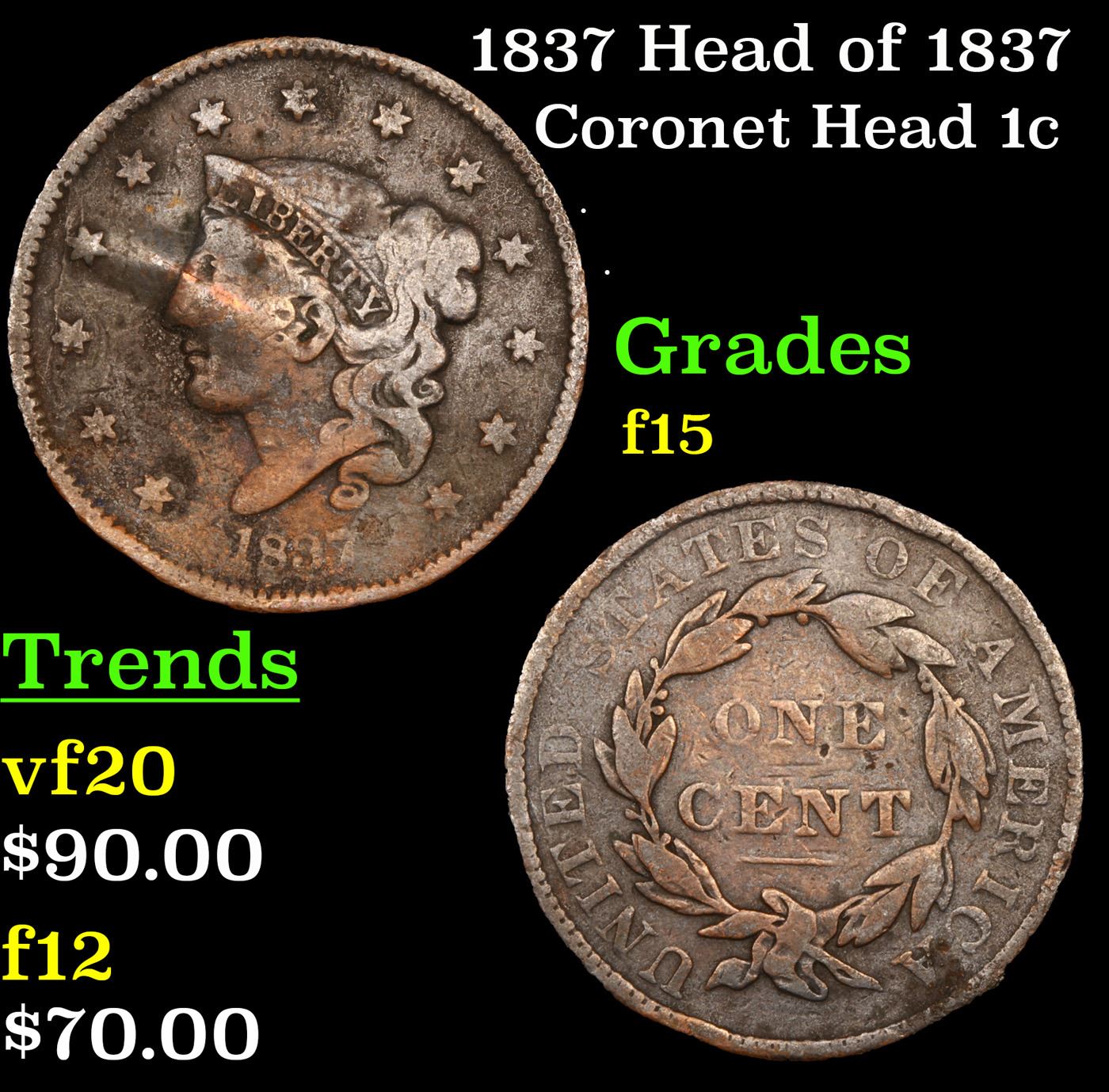 1837 Head of 1837 Coronet Head Large Cent 1c Grades f+.