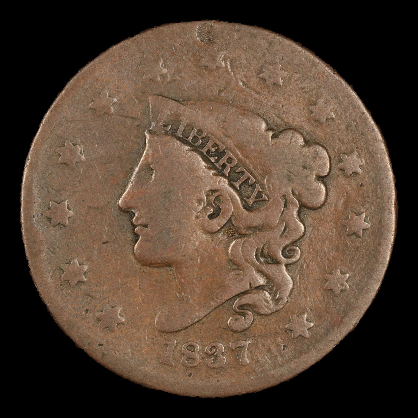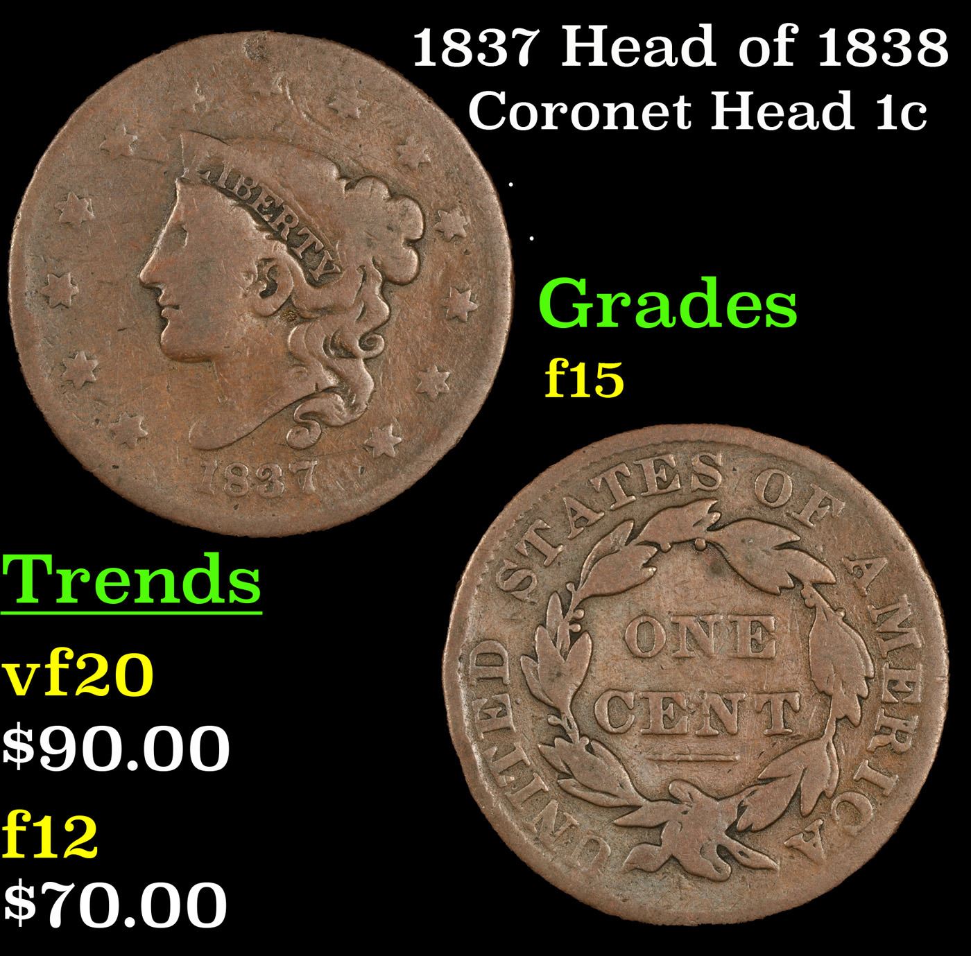 1837 Head of 1838 Coronet Head Large Cent 1c Grades f+.