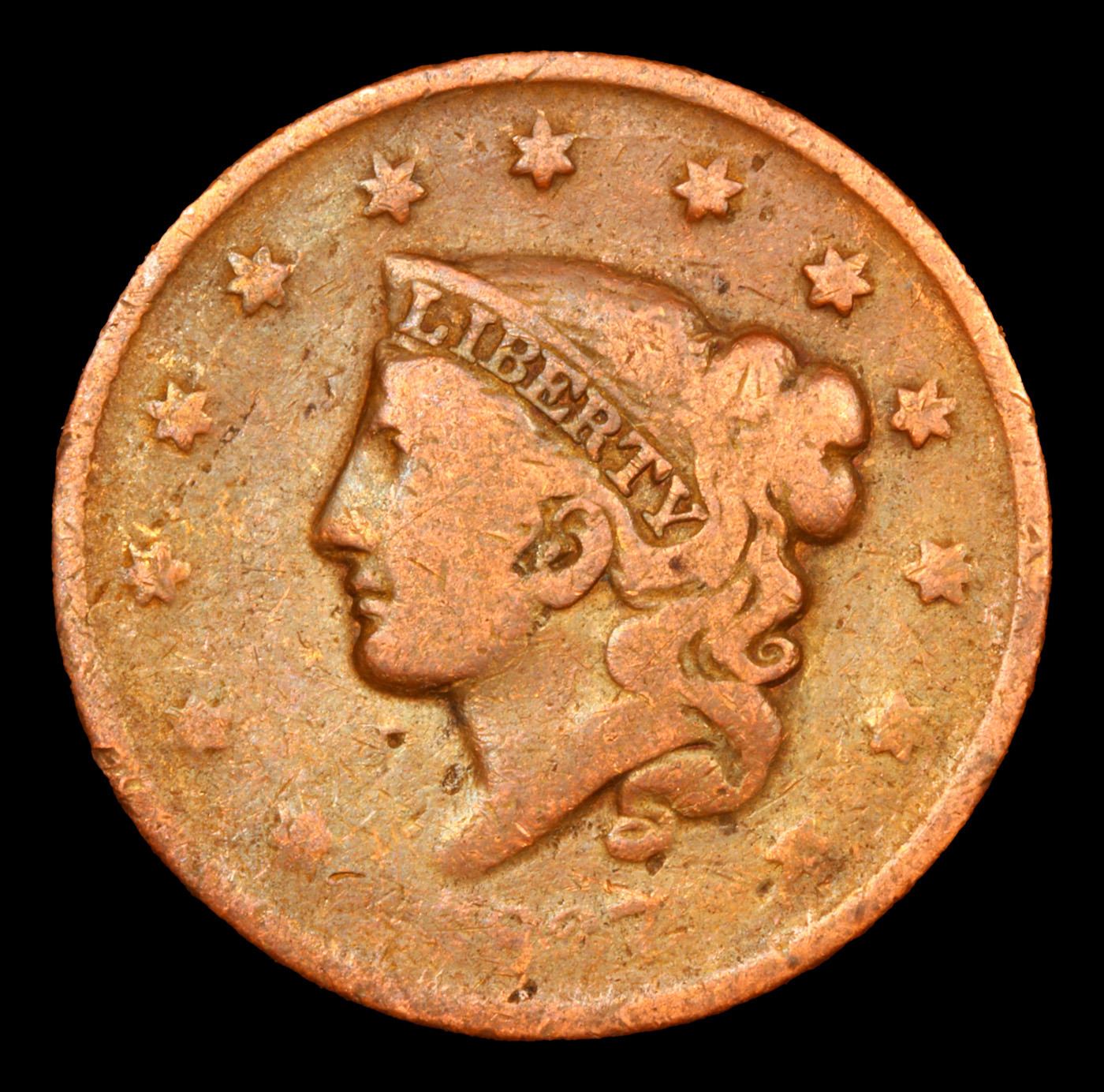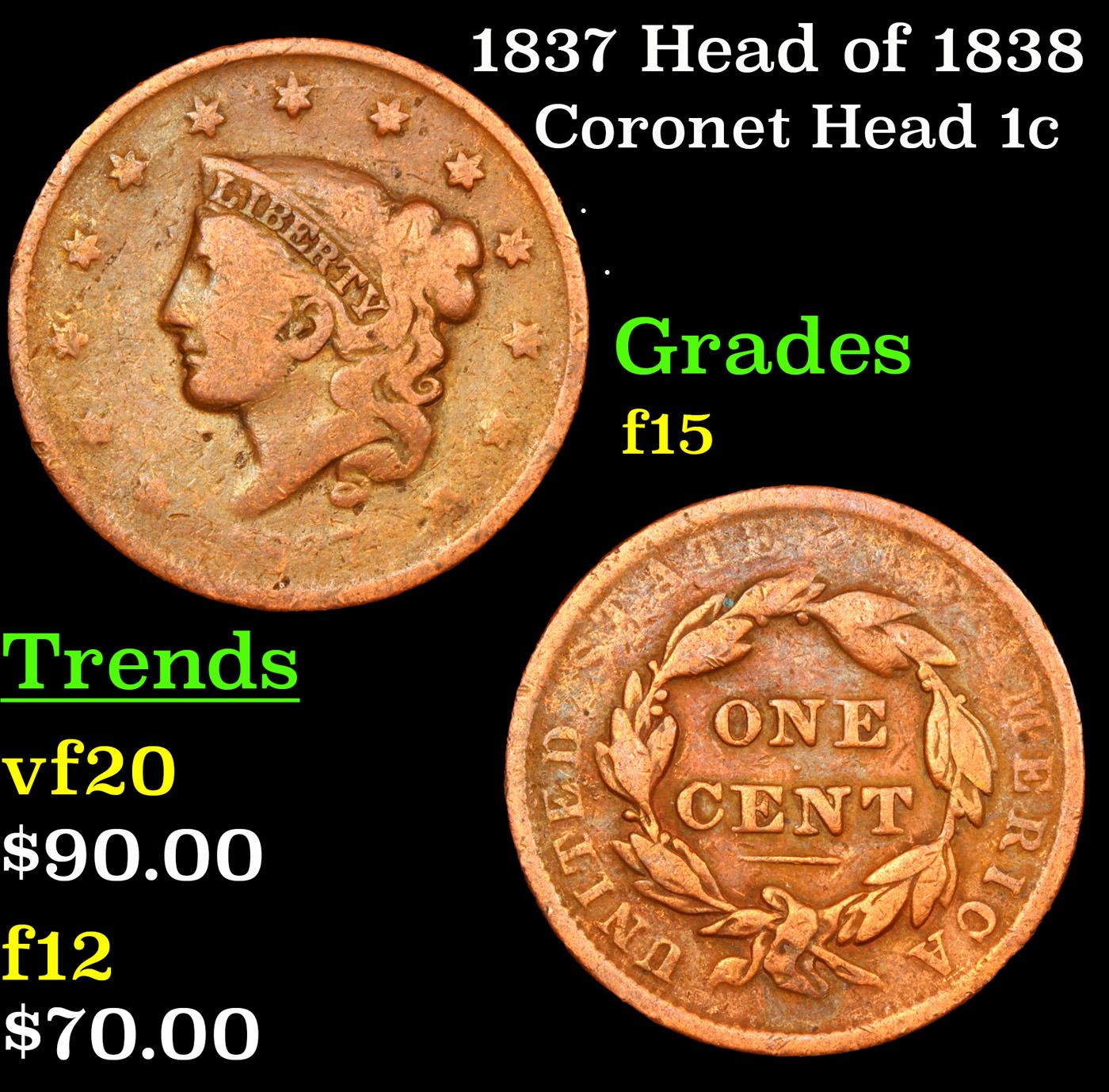 1837 Head of 1838 Coronet Head Large Cent 1c Grades f+.