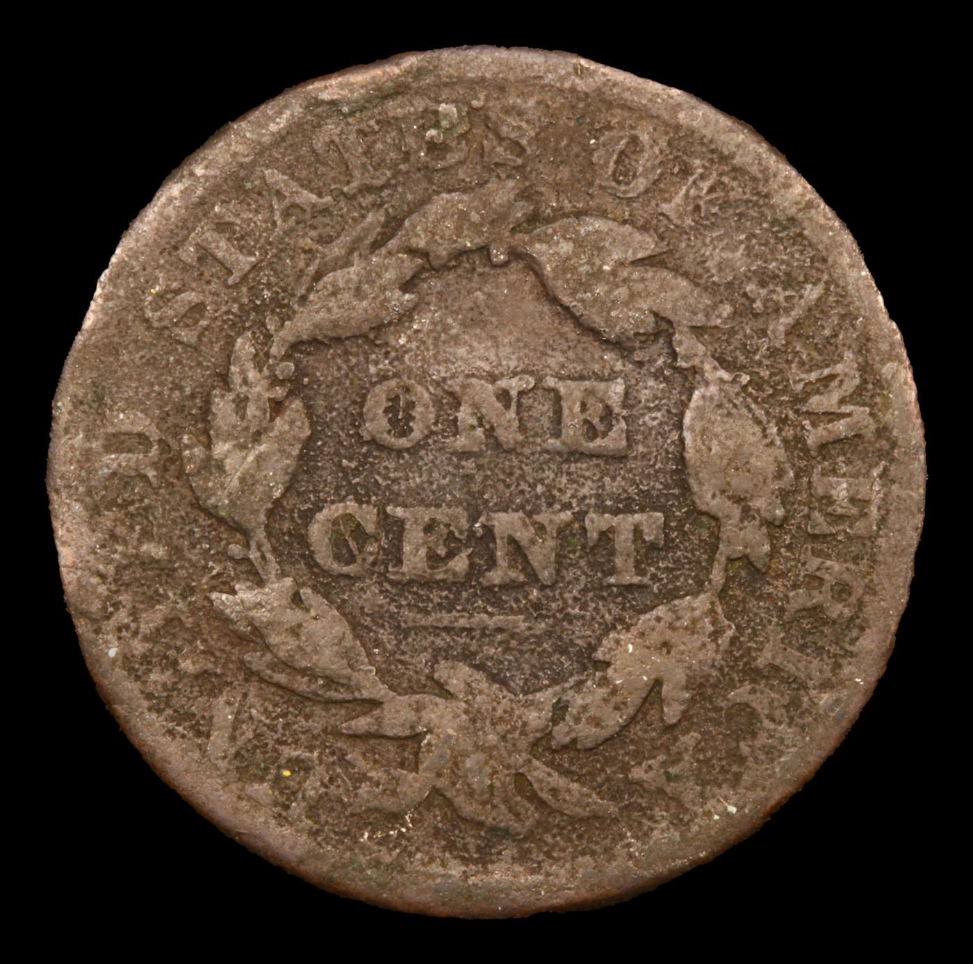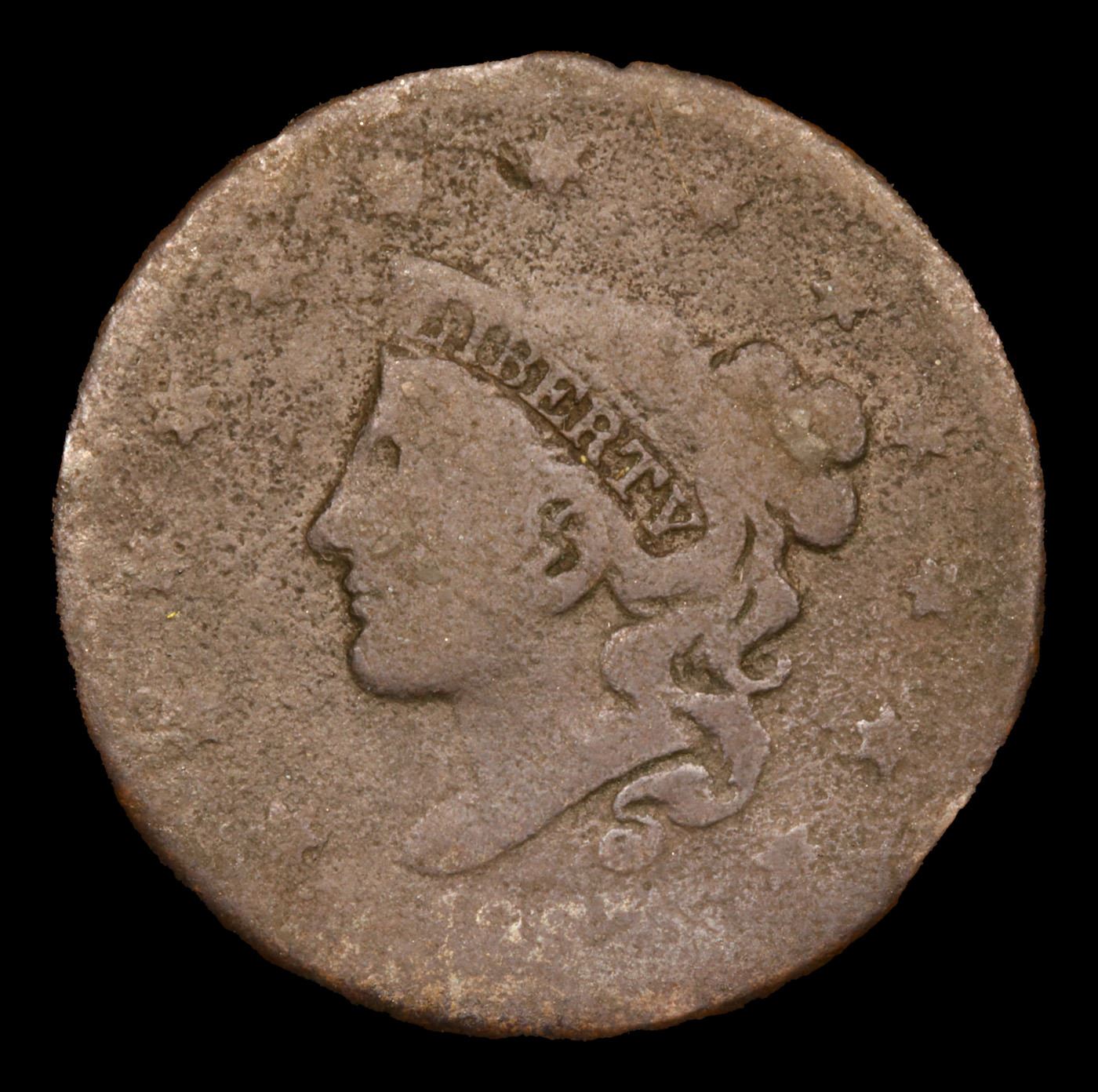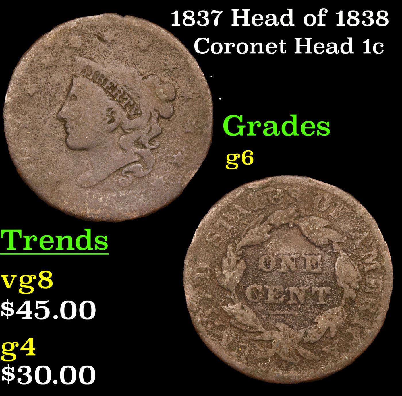 1837 Head of 1838 Coronet Head Large Cent 1c Grades g+.