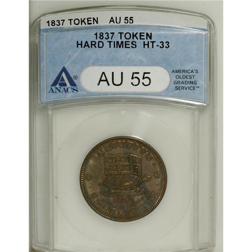 <B>1837 Illustrious Predecessor AU55 ANACS.</B></I> HT-33, R.1. Copper. A better-than-normal condition for this common token, though usually seen lacking original mint luster.<BR><BR><b>Shipping:</b> Coin/Currency (<a target="_blank" href="http://www.heritageauctions.com/common/shipping.php">view shipping information</a>)