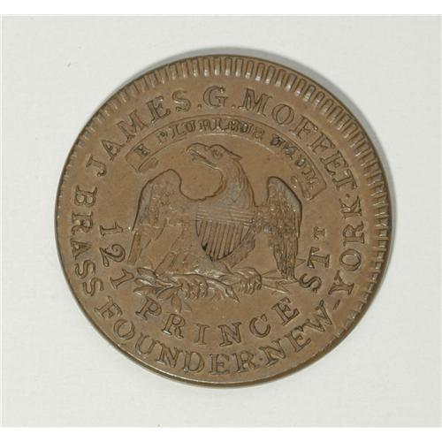 <B>(1837) James G. Moffet, New York, NY, XF40 Uncertified.</B></I> HT-295, R.2. A light tan-brown representative that has moderate central incompleteness, as usual for this variety. The blundered obverse die has two reversed letters within E PLURIBUS UNUM.<BR><BR><b>Shipping:</b> Coin/Currency (<a target="_blank" href="http://www.heritageauctions.com/common/shipping.php">view shipping information</a>)