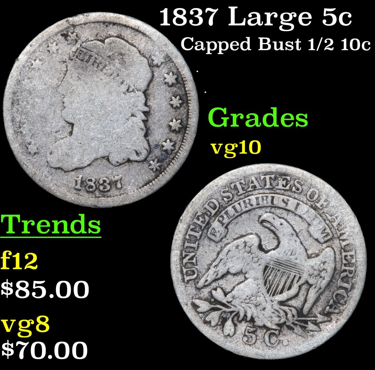 1837 Large 5c . . Capped Bust Half Dime 1/2 10c Grades vg+.