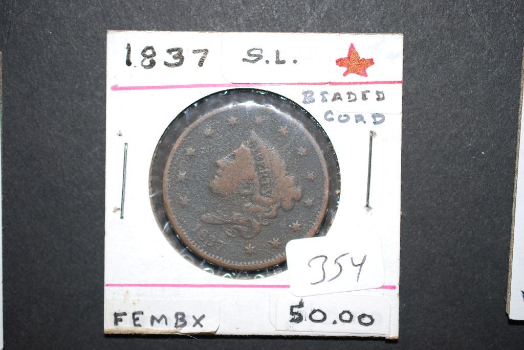 1837 Large One Cent; Beaded Cord Small Letters; EST. $80-120
