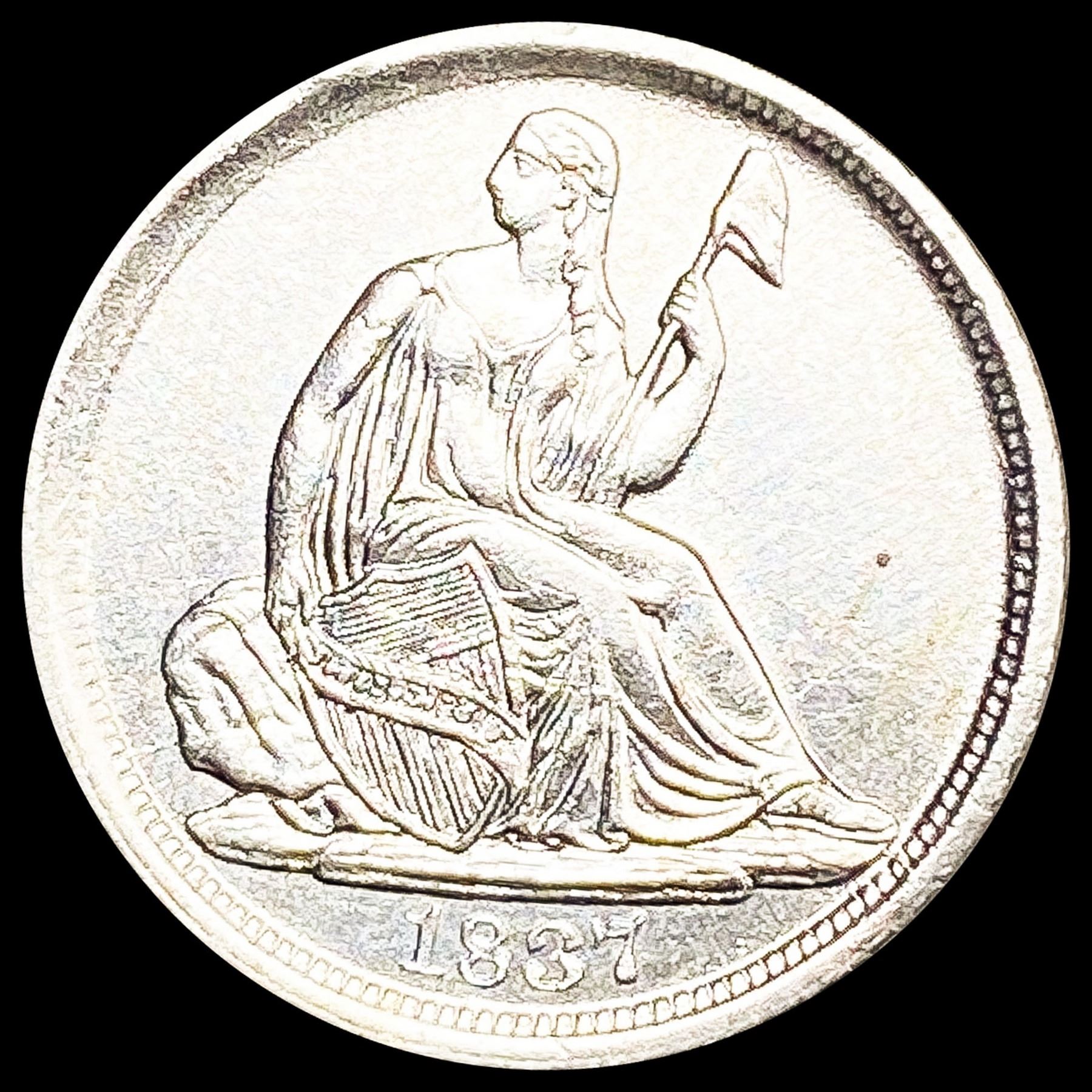 1837 Lg Date No Stars Seated Liberty Half Dime UNC