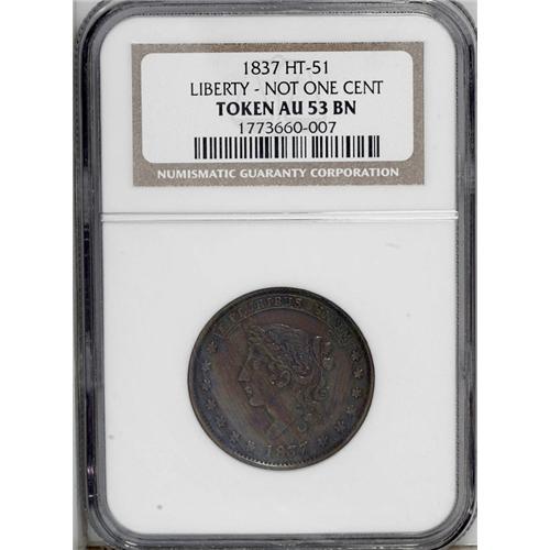 1837 Liberty - Not One Cent, Low-36, HT-51, R.2, AU53 N