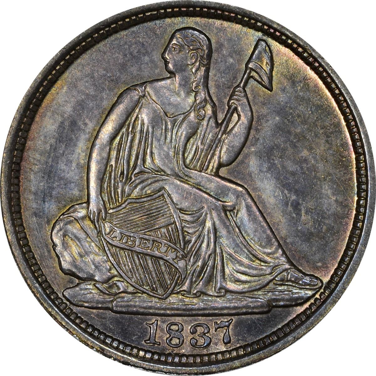 The softly glowing and warmly active surface luster rewards the viewer with a pleasing display of rich gold, peach, and neon blue toning on both sides. Triple-punched date numerals. The strike is sharp and the aesthetics are top-notch – this is one of “those” coins that makes you wonder at first glance “why only a MS-63?” Choice at many levels.