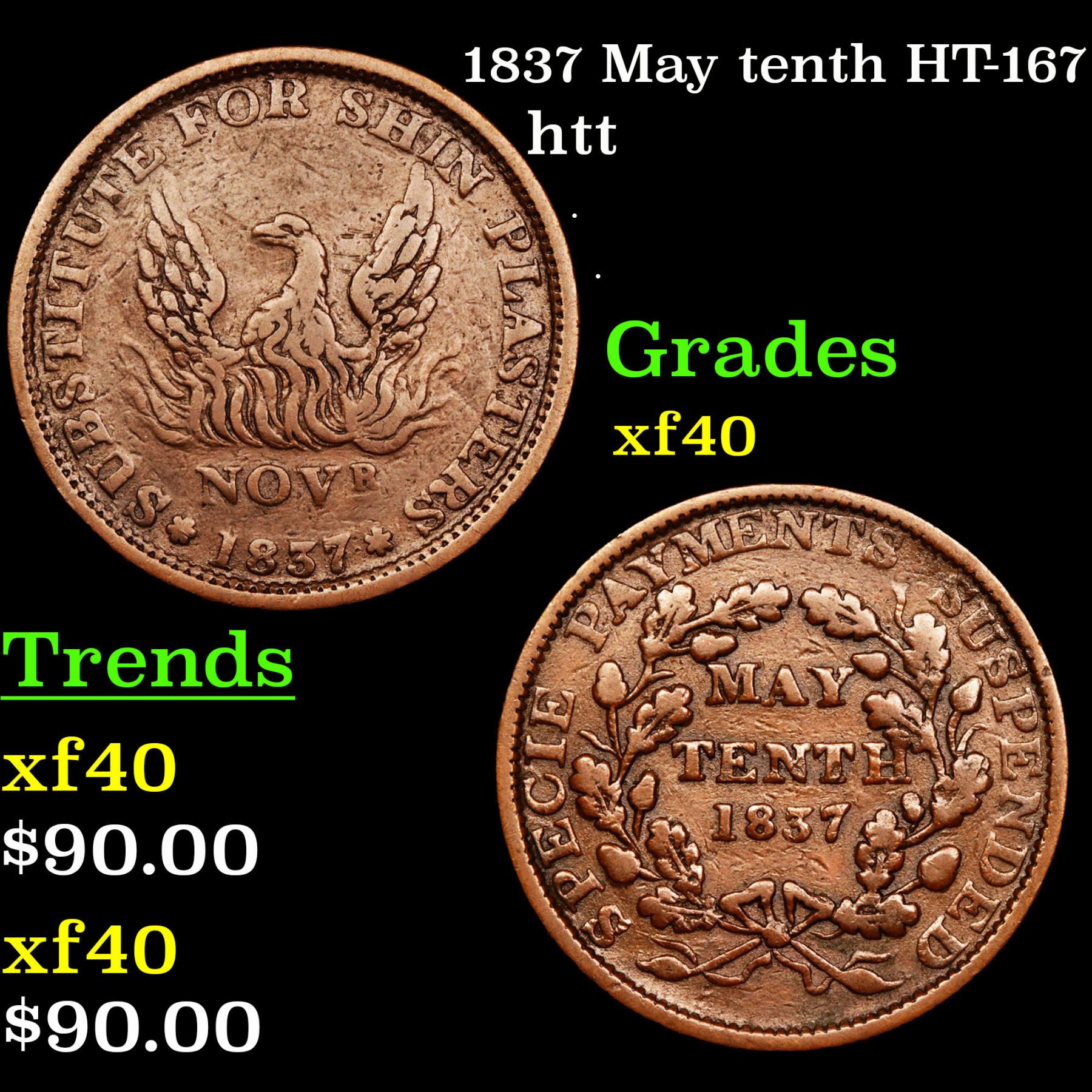 1837 May tenth HT-167 Hard Times Token 1c Grades xf.