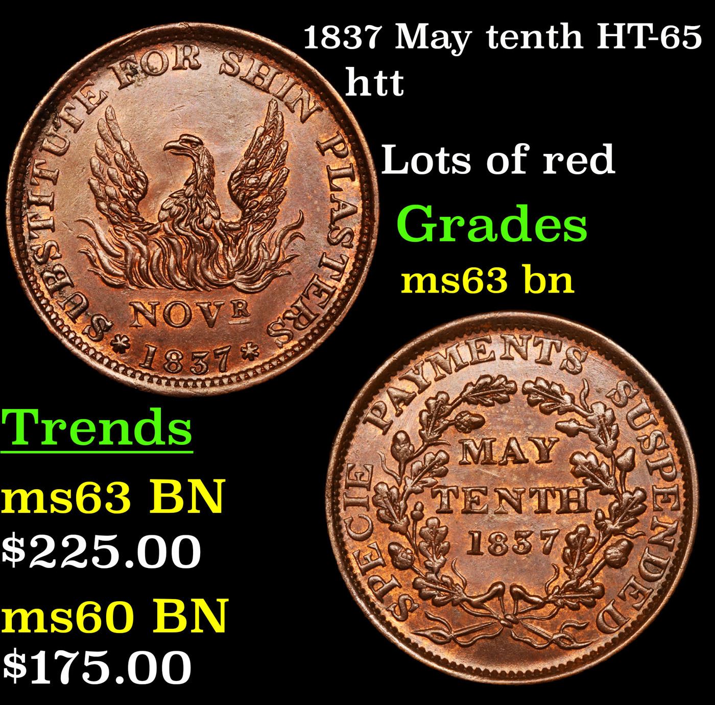 1837 May tenth HT-65 Hard Times Token 1c Grades Select Unc BN.
