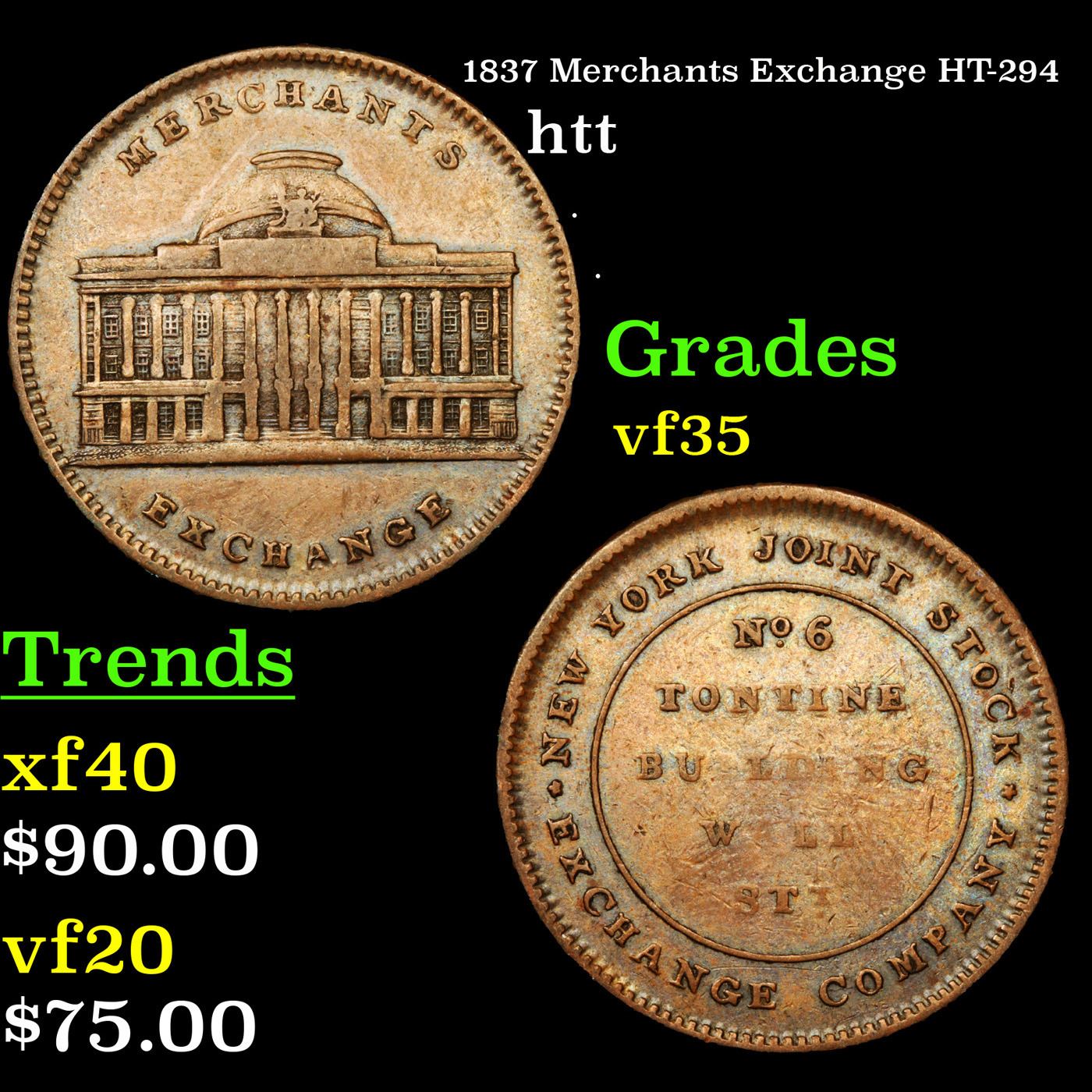 1837 Merchants Exchange HT-294 Hard Times Token 1c Graded vf++.