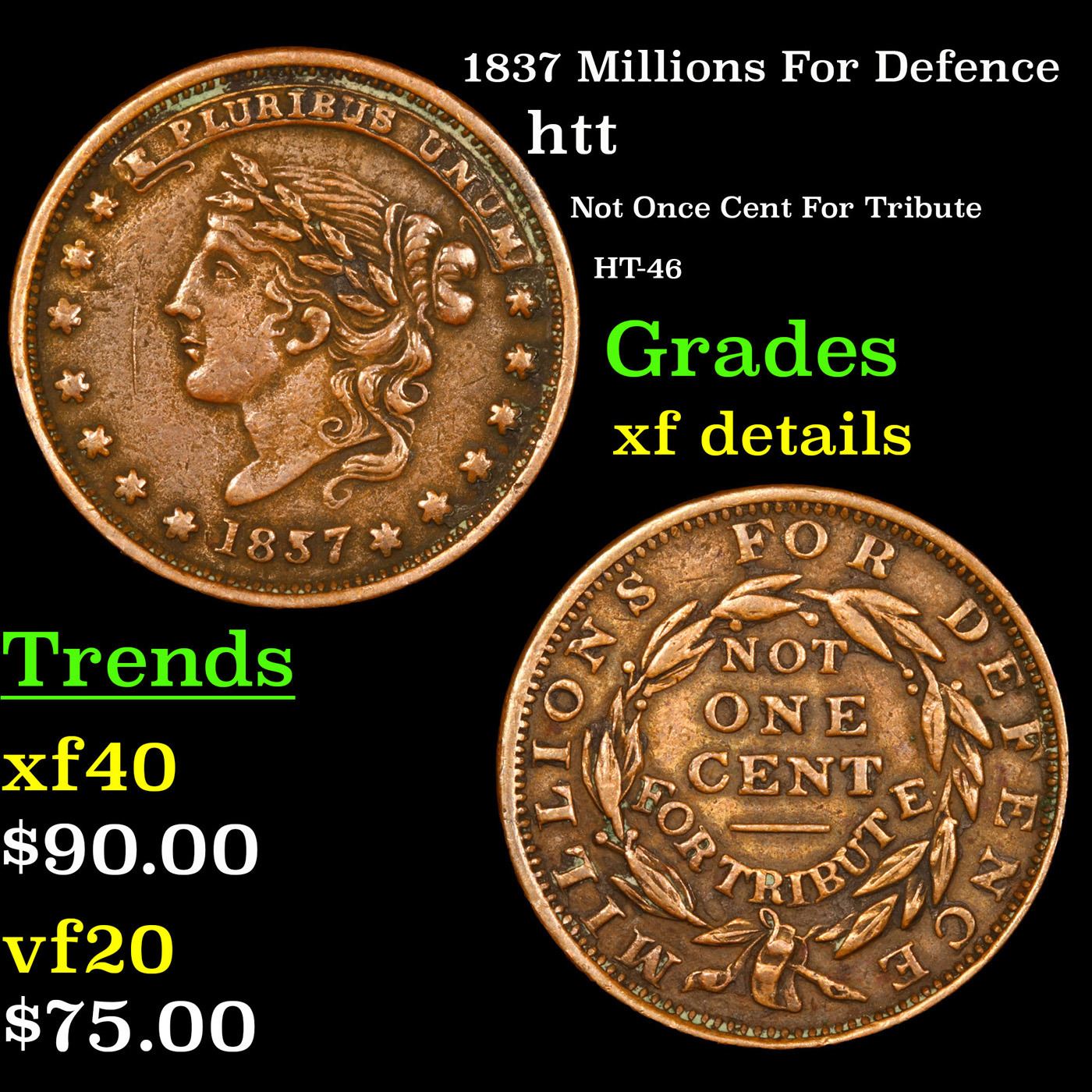 1837 Millions For Defence Hard Times Token 1c Grades xf details.