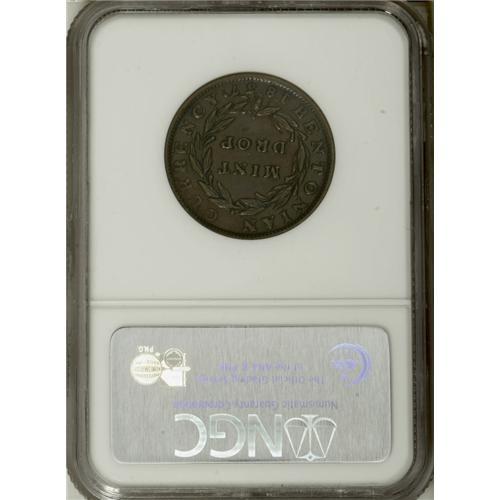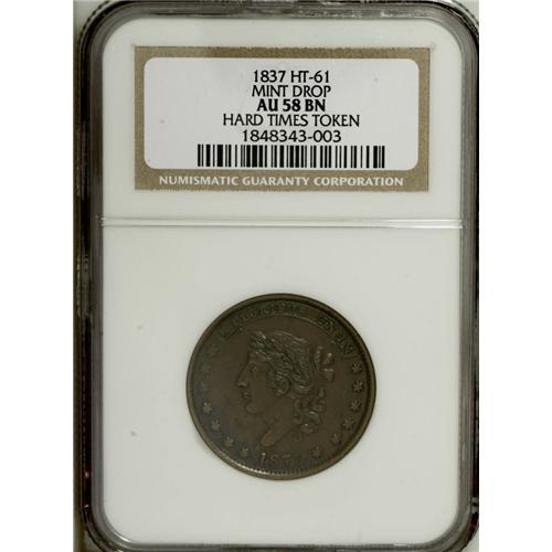<B>1837 Mint Drop AU58 NGC.</B></I> Low-37, HT-61, R.2. A well struck and attractive medium brown representative with only a few nearly imperceptible hair-thin field marks. Light build-up in design recesses is usual for the series.<BR><BR><b>Shipping:</b> Coins & Currency (<a target="_blank" href="http://www.heritageauctions.com/common/shipping.php">view shipping information</a>)