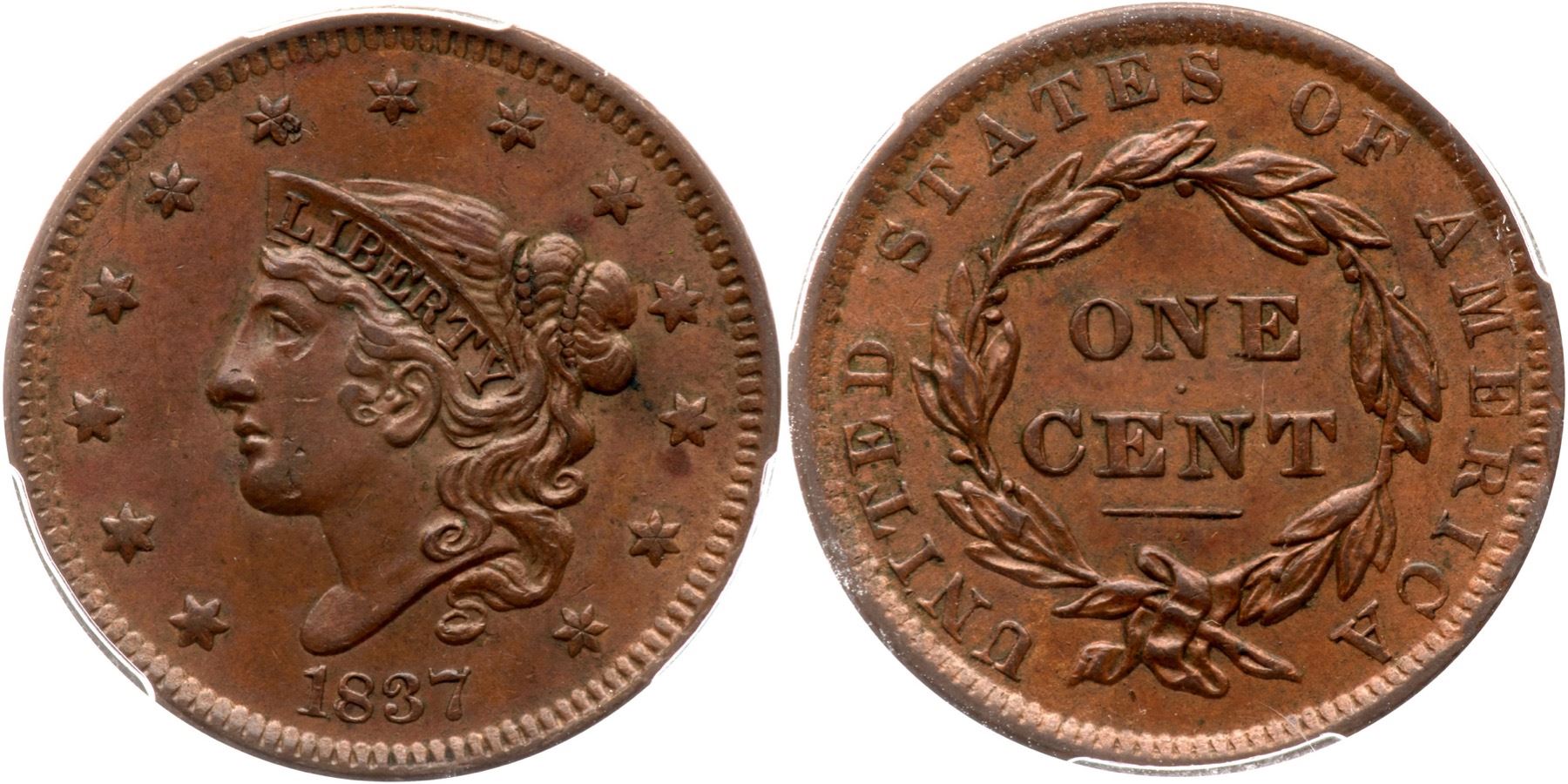 Lustrous light brown. A nick on Liberty’s chin; another tiny one at star six.