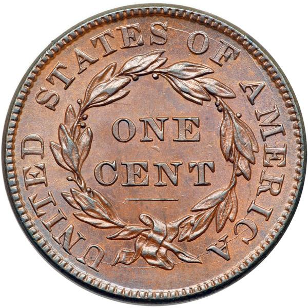 1837 N-3 R1 Plain Hair Cord MS60. Lustrous medium brown with hints of very faded mint color bleeding through in protected areas on the reverse. The notable marks are a small spot of dark planchet impurity in the field right of star 1 and a tiny nick on the tip of the chin. The reverse is choice. Nicely struck MDS.