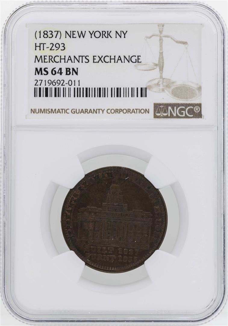 1837 New York Merchants Exchange Hard Times Token HT-293 NGC MS64BN