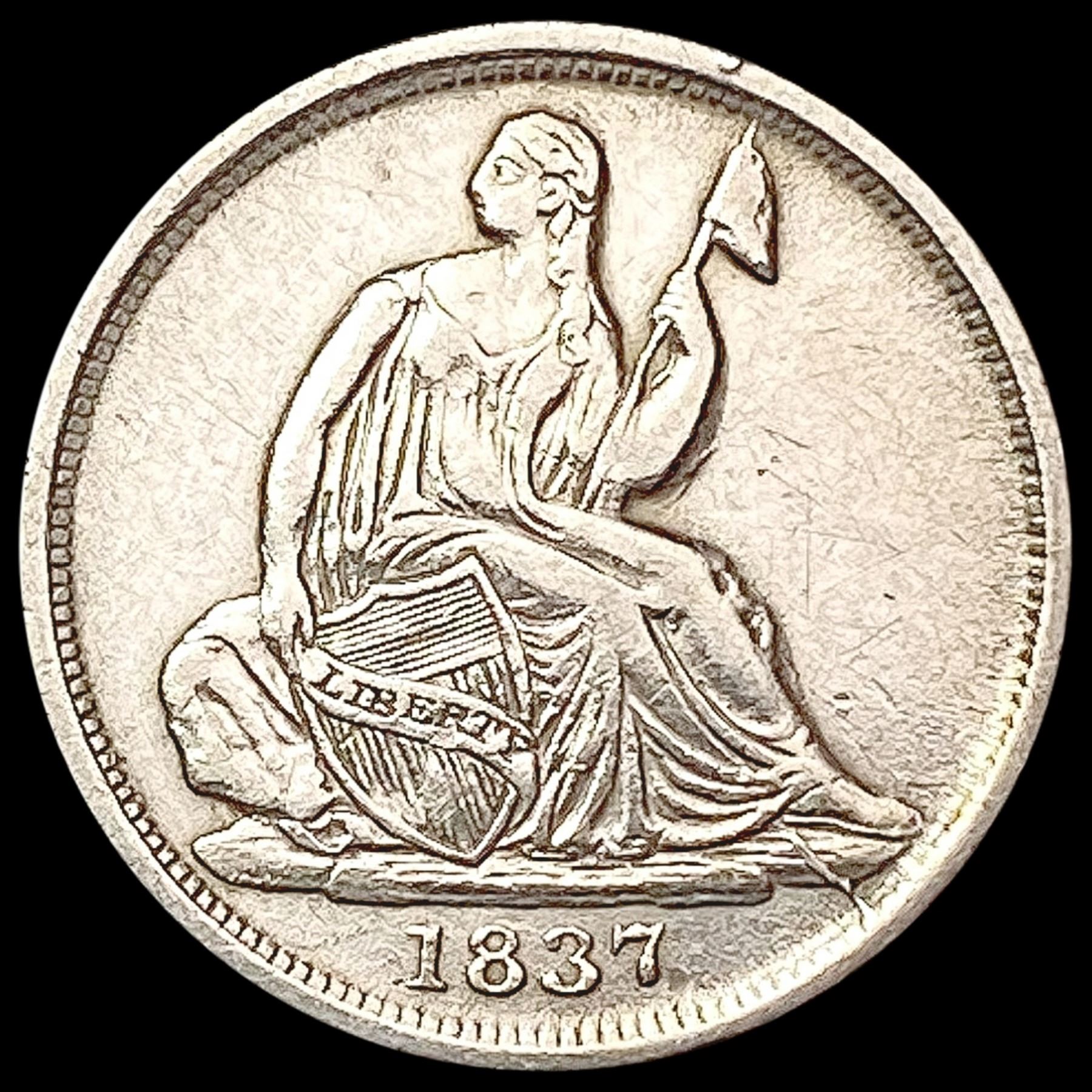 1837 No Stars Seated Liberty Half Dime CLOSELY UNCIRCULATED