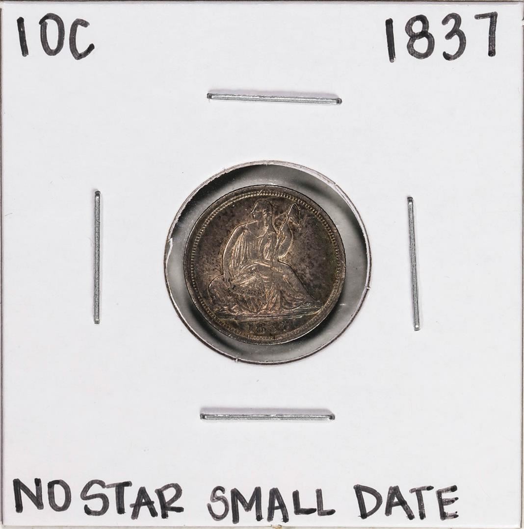 One 1837 No Stars Small Date Seated Liberty Half Dime Coin.