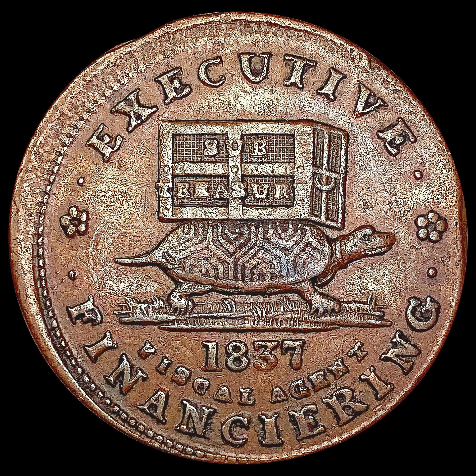 1837 Off Center Hard Times Coin ABOUT UNCIRCULATED