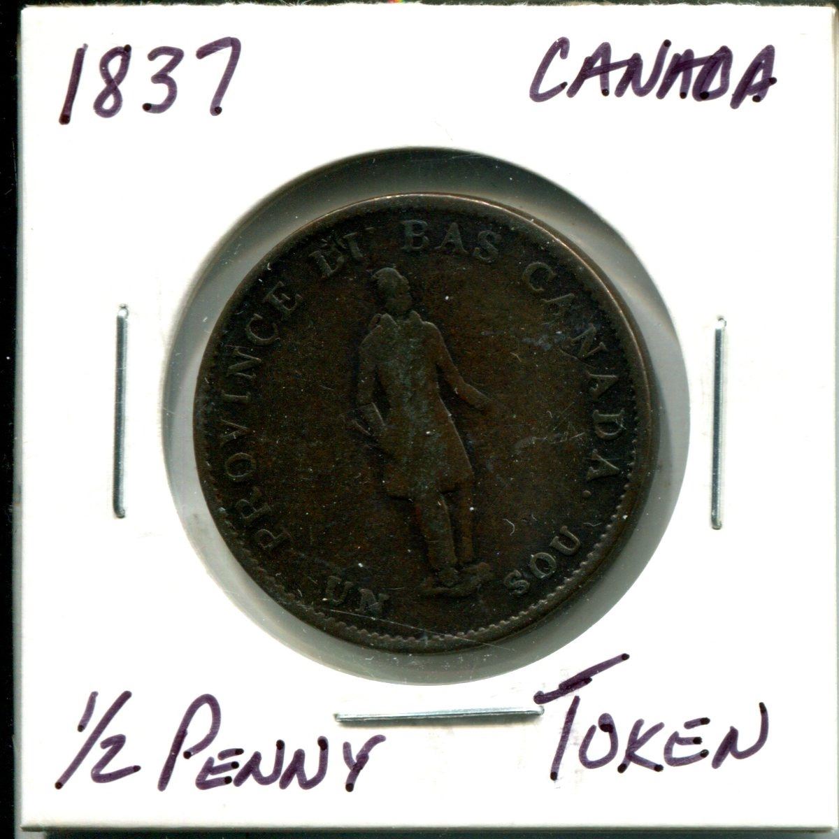 1837 PROVINCE OF CANADA 1/2 PENNY
