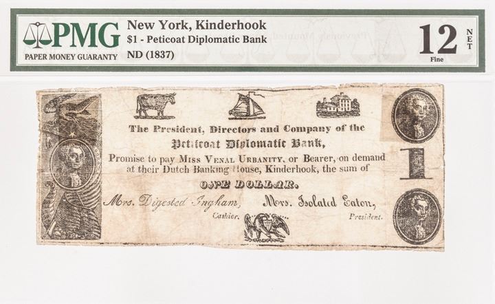 (1837) Petticoat Diplomatic Bank Political-Satirical Note Kinderhook NY PMG F-12