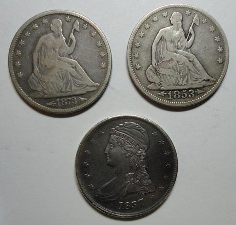 1837 RE XF45 harshly cleaned-1853 ar/rys F/VF-1873 arrows Fine half $