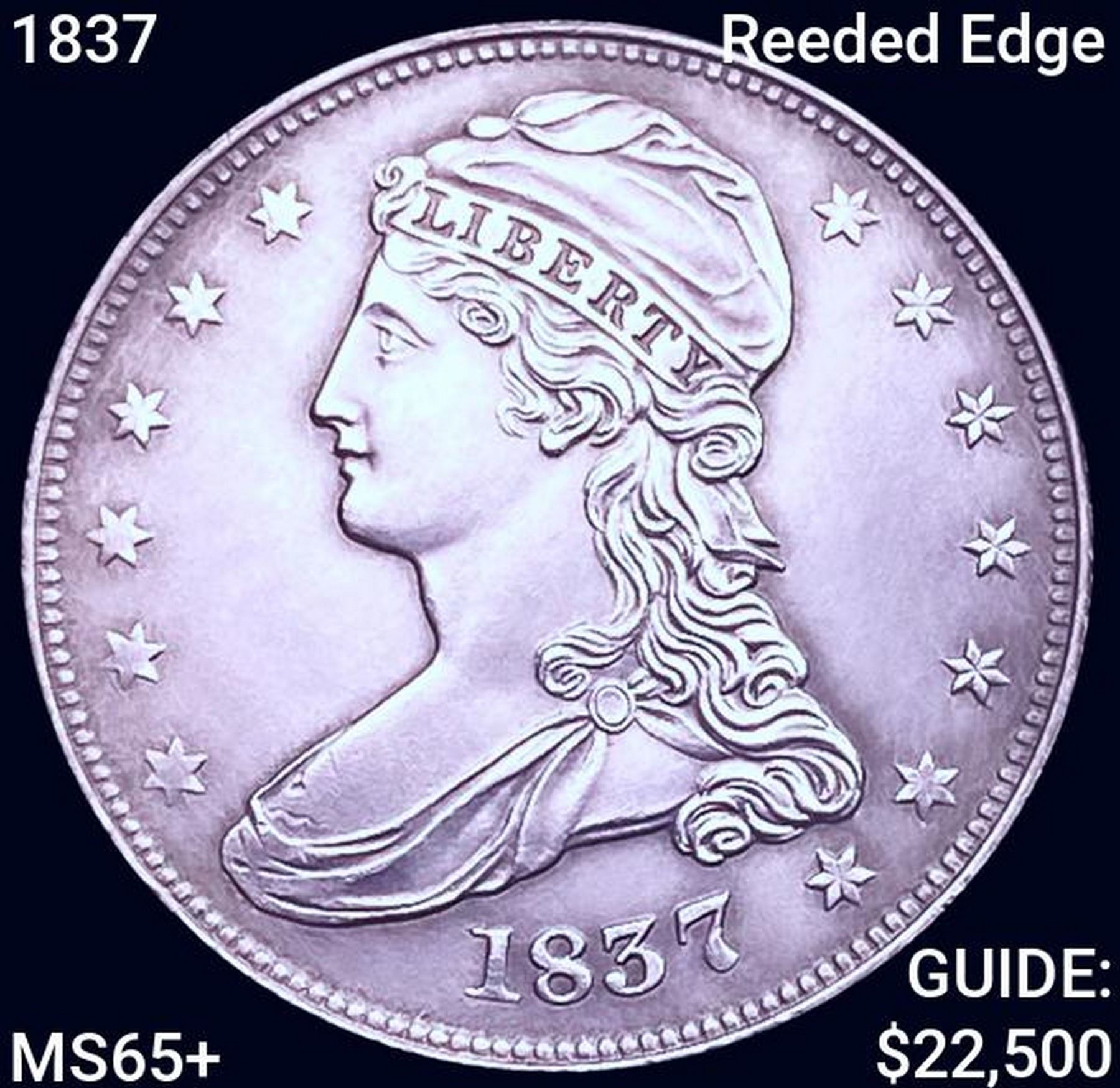 1837 Reeded Edge Capped Bust Half Dollar GEM BU +