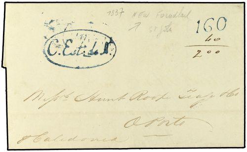 1837 ST JOHNS (New Founland) to OPORTO (Portugal) with maritime entry cachet and oval LISBOA transit with accountancy 160/40=200 tax applied on arrival in Oporto. Very fine.